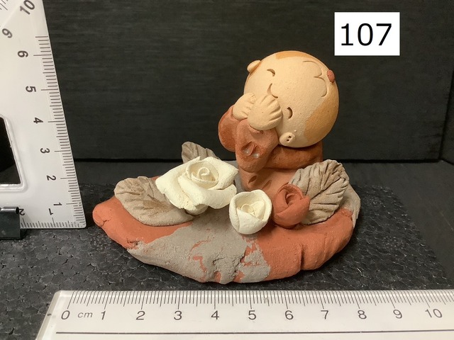 ・作品には 鉱石の粉(釉薬)を散りばめ野山のお地蔵様の苔むした姿をイメージしてあります また耳に穴が通り口が開いているわらべ達も多く 心でお話を聞いて頂ける事を念じまして制作されております。